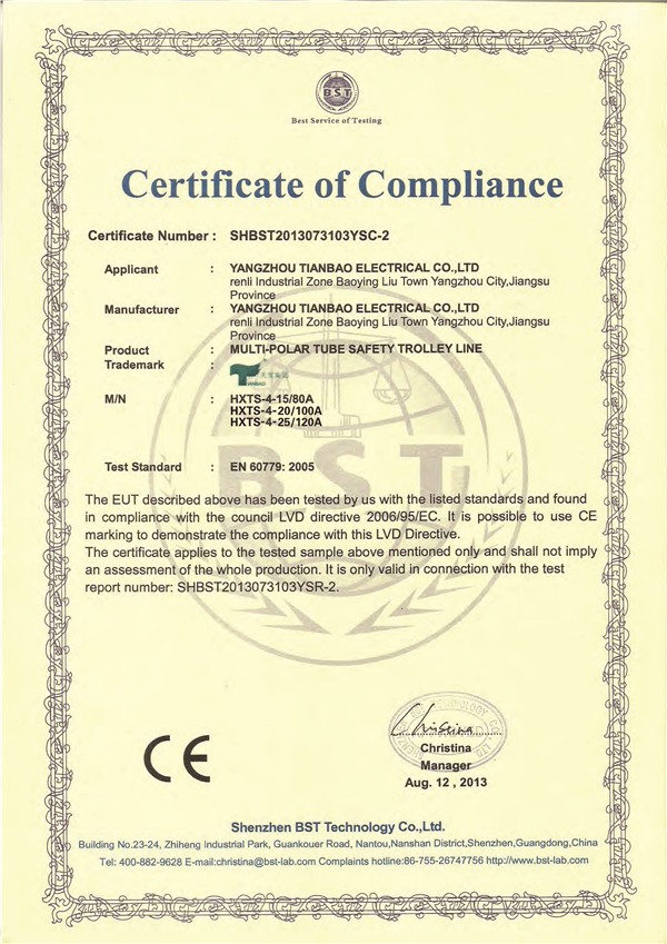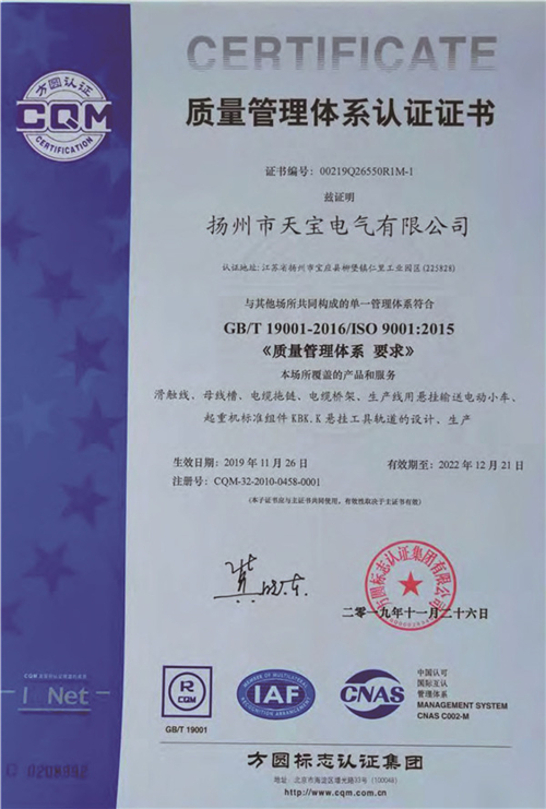 揚州市天寶物流輸送設備有限公司是國內較早引進國外移動供電、電動自行小車、物料搬運設備設計和制造的廠家。核心競爭力在于,它是一家集研發、制造、咨詢服務及安裝為一體的供應商,為客戶的動力和數據傳輸提供量身定制的解決方案。 在業界,揚州市天寶物流輸送設備有限公司在國內不同應用領域享有盛譽。產品豐富,包括安全滑觸線、電纜滑線、剛體滑線、電車線、集電器、母線槽、電動小車輸送系統、KBK.K輕型起重機組件、扁平電纜、拖鏈等10大系列100多個品種和非接觸式動力傳輸系統等。我們將為客戶提供